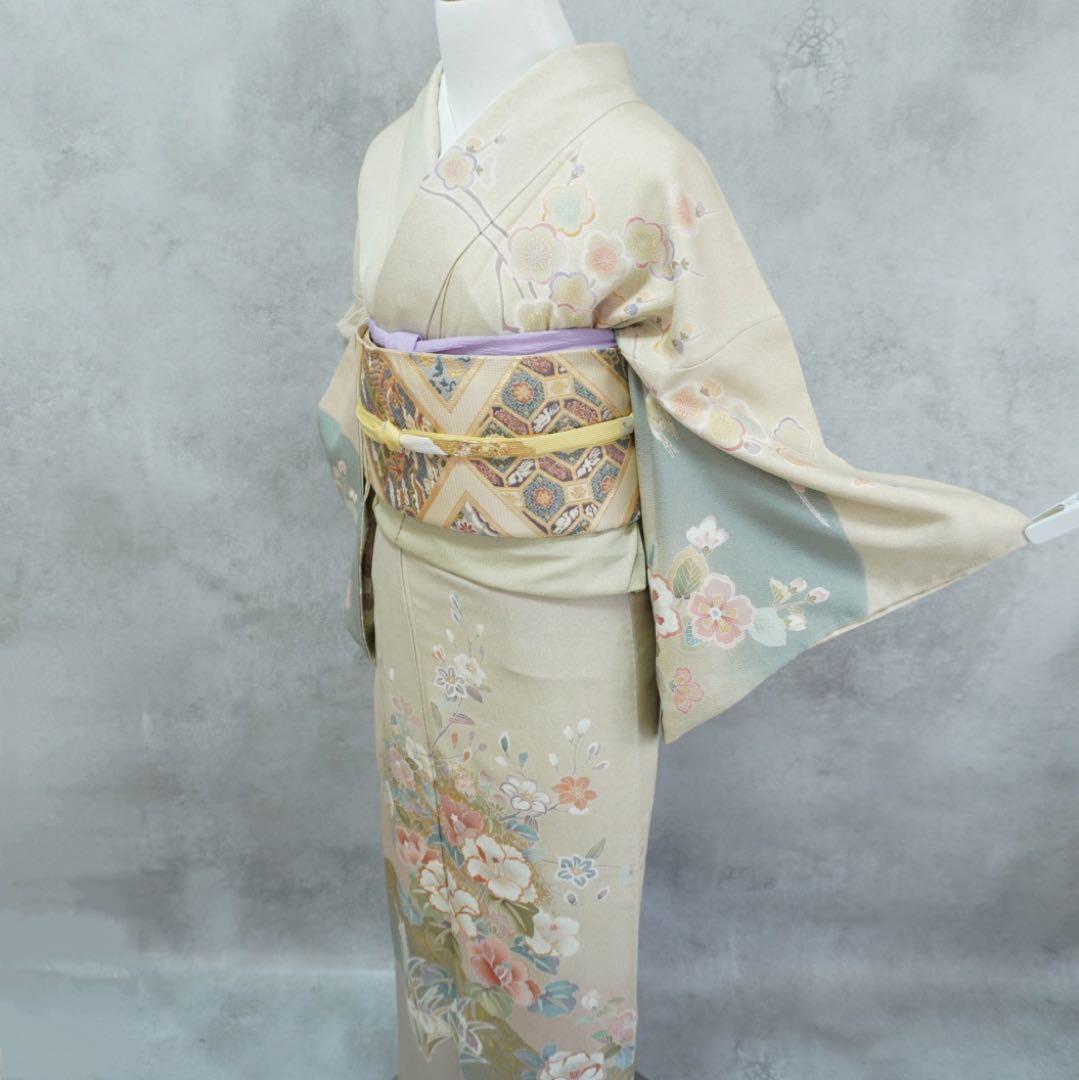 こちらのサイトで¥108000お譲りいただきました¥88000→78000→68000→58000 最終値下げ素敵なお着物を3000以上のお取り引きのある方ですしつけ糸を取り室内で試着しましたが私の年齢では若過ぎるようです誂えのお品で上質なお品ですどなたかお気に召していただける方どうぞよろしくお願いいたします薄い無地系の色はとても薄いラベンダーグレーに片方の染は優しい薄い和の黄色が地色となっていますラベンダー×イエローの絶妙なカラーバランスが素敵です3回程着てメンテナンスから戻ったお品とありました背中心から 約159 ㎝裄丈 約68.5 ㎝おくみ 約13.5㎝前幅 約24.5㎝後幅 約29㎝袖丈 約49 ㎝平置きで採寸しています測り方には必ず個人差があり多少の誤差が出ます。新品 礼装用袋帯 緑に金箔織 不死の“藤の花” 刺繍 金糸輝く優雅で美しい逸品。ご容赦くださいどなたかお気に入りいただきますと幸いです。名古屋帯 白色。よろしくお願いします。bo1b 購入前にプロフ確認!さん専用ページ。レビュー